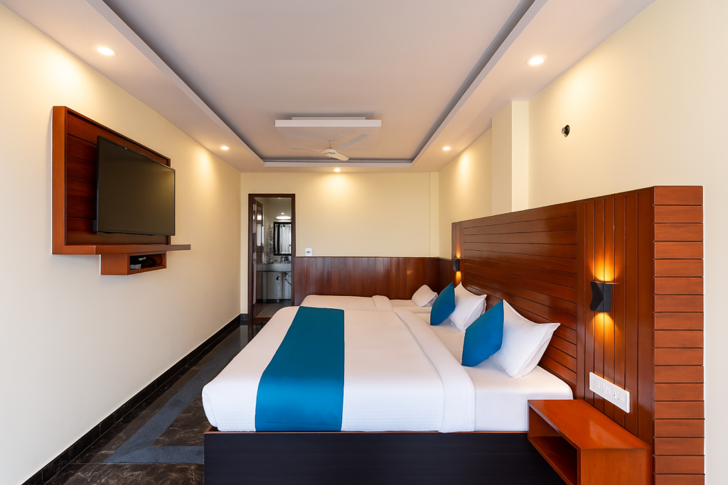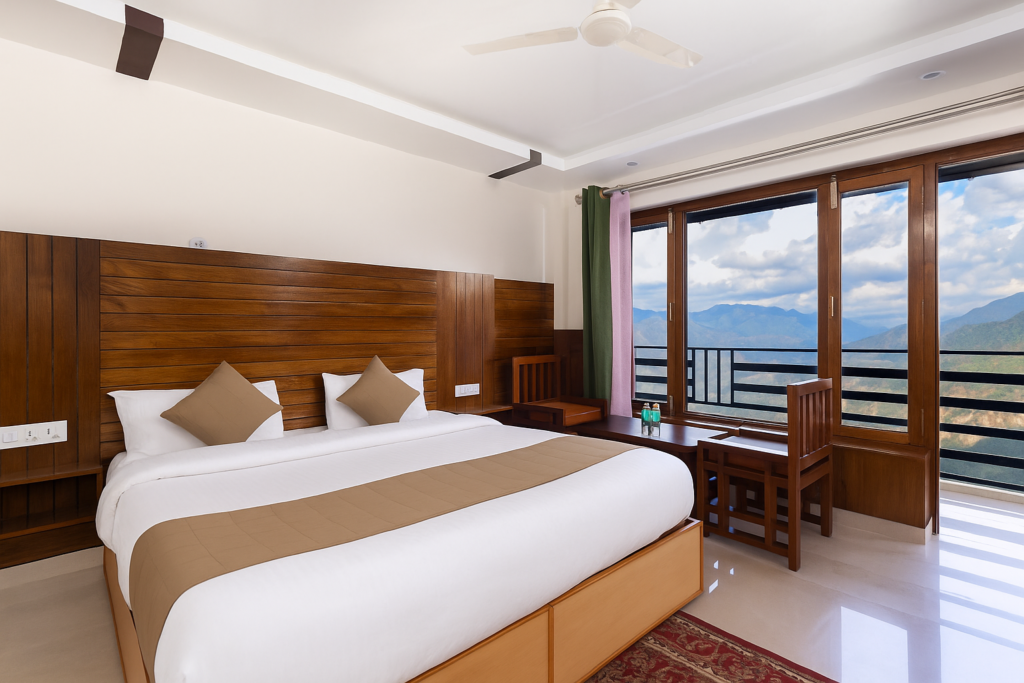 Executive Rooms offer extra space, elegant décor, and enhanced comfort for guests looking for a premium stay experience. Enjoy beautiful views and peaceful surroundings while staying close to Mussoorie’s major attractions.
